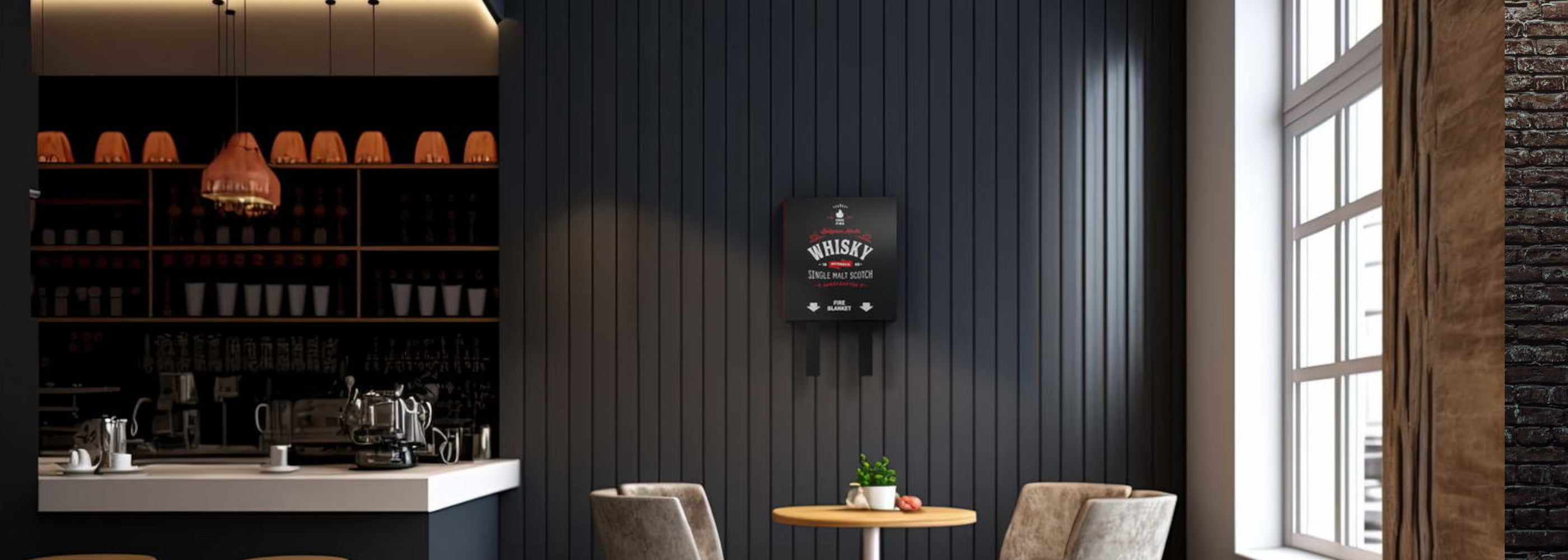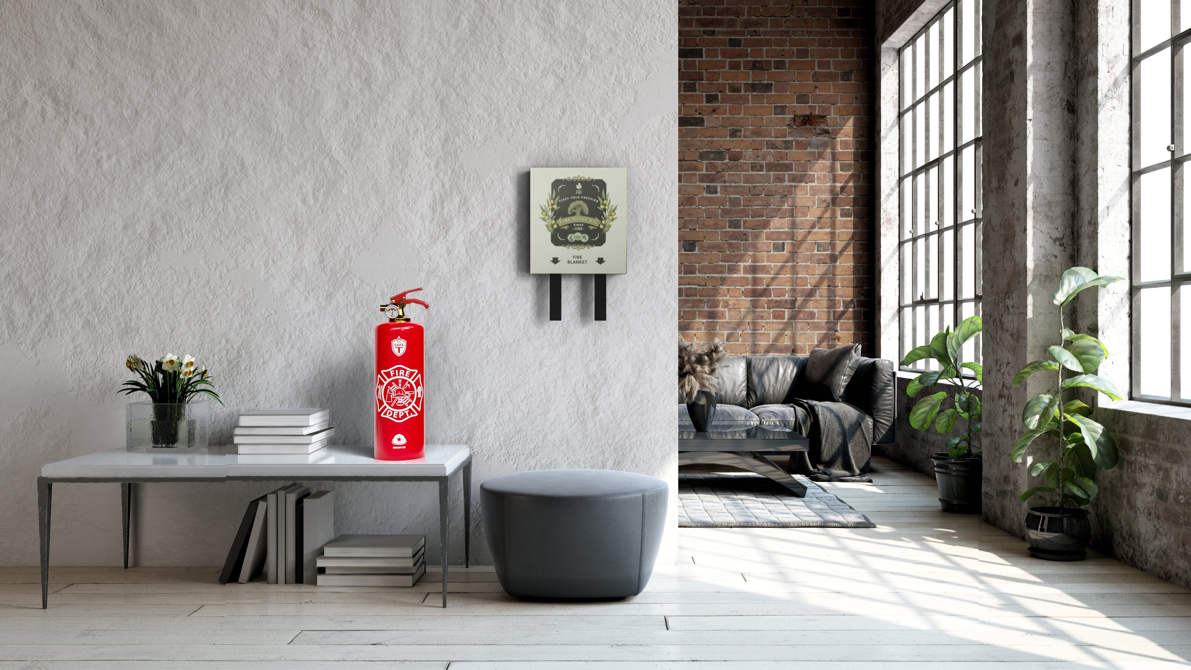 Fully functional fire extinguishers and fire blankets to keep in plain view, instantly accessible, when second counts.